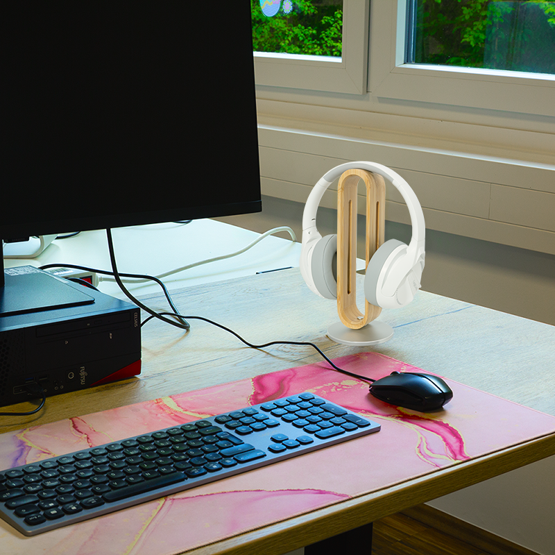 > Koptelefoonstandaard van bamboehout aluminium voet tot 5 kg overop de oren bruinzilverfe00fa4ea6b641e47cd7b104068424c4
