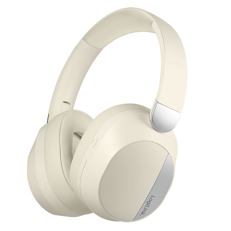 BT 6.0 Sound Wave-headset, ANC, 3,5 mm AUX, 15 uur batterijduur, crème